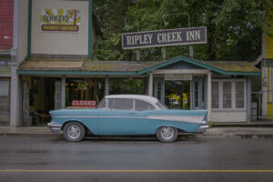 Desde Jasper seguí subiendo hacia el norte, cruzando Prince George y la reserva indígena Gitwangak, hasta que la ruta me llevó por la Glacier Highway, ese camino que une Stewart, en Columbia Británica, con Hyder, Alaska. Stewart apareció entonces como un pequeño pueblo al final del mundo: aislado, silencioso, rodeado de montañas y glaciares, con esa sensación de lugar suspendido en el tiempo que te obliga a bajar la velocidad.​
