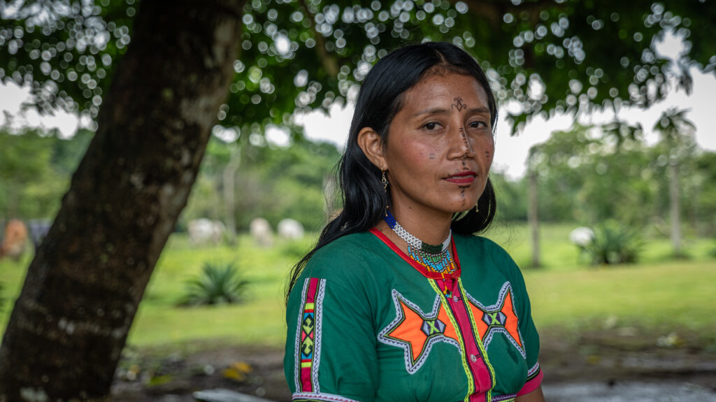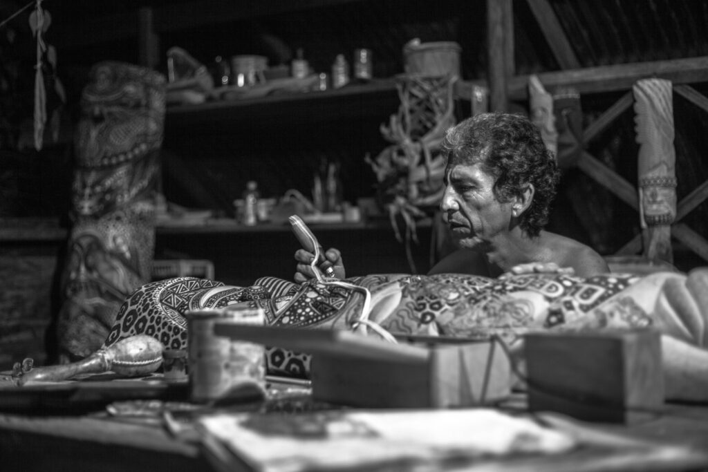 Johana Rubiano, artista Emberá, selva del Darien.